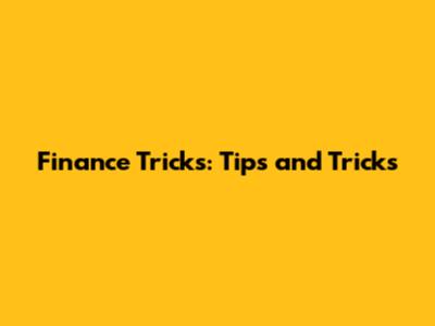 Finance Tricks: Tips And Tricks