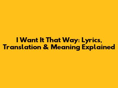 I Want It That Way: Lyrics, Translation & Meaning Explained