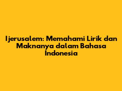 Ijerusalem, sebuah lagu yang sarat makna dan emosi, telah menyentuh hati banyak orang di seluruh dunia. Bagi kamu yang penasaran dengan lirik ijerusalem dan ingin memahami makna ijerusalem yang mendalam, serta mencari terjemahan ijerusalem dalam bahasa Indonesia, kamu berada di tempat yang tepat! Mari kita selami lebih dalam lagu yang indah ini, mengungkap setiap baitnya, dan merasakan keajaiban yang terkandung di dalamnya. Lagu ini bukan hanya sekadar rangkaian kata dan melodi, tetapi juga sebuah perjalanan spiritual, sebuah cerminan dari harapan, kerinduan, dan iman. Melalui artikel ini, kita akan menjelajahi berbagai aspek dari lagu Ijerusalem, mulai dari lirik aslinya hingga interpretasi dalam bahasa Indonesia, serta konteks budaya dan sejarah yang melatarbelakangi penciptaannya. Bersiaplah untuk terhanyut dalam keindahan dan kedalaman lagu ini, dan temukan makna yang mungkin selama ini tersembunyi bagi kamu.
