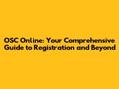 OSC Online: Your Comprehensive Guide To Registration And Beyond