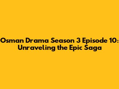 Hey guys! So, you're all hyped up for Osman Drama Season 3 Episode 10, right? It’s totally understandable! This season has been an absolute rollercoaster, packed with more drama, political intrigue, and breathtaking action than we could have ever imagined. We've seen our beloved Osman Bey navigate treacherous alliances, face down formidable enemies, and make decisions that shape the very future of the Kayı tribe and, let's be real, the entire Ottoman Empire. This latest episode is set to be a game-changer, pushing our characters to their limits and leaving us on the edge of our seats, just the way we like it. Get ready, because we’re diving deep into what makes this episode a must-watch, exploring the key plot points, character developments, and those burning questions we all have.