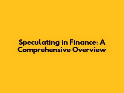 Speculating In Finance: A Comprehensive Overview