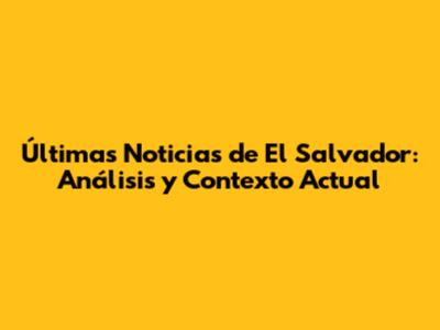 Últimas Noticias De El Salvador: Análisis Y Contexto Actual